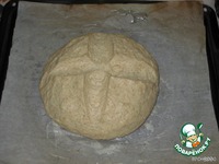 Хлеб будем печь на протвине, я еще на всякий случай пекорской бумагой застелила. Смазываем бумагу маслом и выкладываем тесто. Надрезаем крест на крест. |
