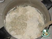 Влить теплое молоко и растопленное сливочное масло. Замесить тесто. |