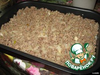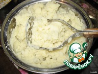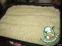 Выкладываем половину от общего количества пюре. Это будет 1-й слой. |