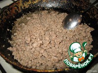 Фарш также обжариваем на растительном масле с добавлением соли и специй. Специи, какие любите. Я использовала черный молотый перец и немножко универсальной приправы типа "Вегетта". |