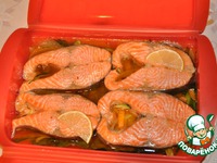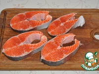 Режем на порционные куски рыбу, солим, перчим |