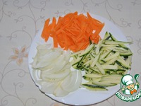 Нарезаем соломкой кабачки, морковь, лук, листья шпината оставить целыми |