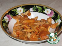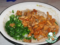 Мясо курицы перемолоть в однородную массу с луком. Добавить зеленый лук, грибы, специи, яйцо(сырое) Кто хочет может в фарш во время перемалывания добавить смоченную булочку. Фарш выложить в форму и поставить в другую форму, наполненную водой. Поставить в духовку на 1 час, темп. 180 градусов.http://s44.radikal.ru/i103/0902/e2/9accfb6f1a62.jpg Террин из курицы с лисичками — кулинарный рецепт с сайта Поварёнок.ру.