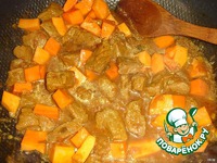 Описание: После удачного эксперимента с тыквой решила продолжить. Теперь уже с другим мясом - говядиной и с карри. Вкус очень интересный, для любителей пряных блюд. А мясо, приготовленное по такому рецепту, такое мягкое, просто тает во рту.