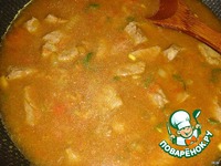 Добавить протертые на терке помидоры, мясо, полить соком одного лимона, залить бульоном и тушить под крышкой 1,5 часа. |