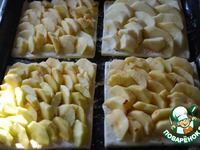 Яблоки чищу от кожуры, режу дольками и укладываю внахлест. Посыпаем сверху сахаром с корицей. |