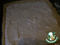 Тесто достать с холода, разделить на 2 части. Первую раскатать, выложить на смазанный противень. На него вылить начинку. |