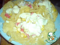 Описание: вкусные сырные корзиночки с маленьким салатиком. у меня корзиночки не очень получились. этот рецепт сама придумала.