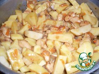 Обжариваем все это дело в казанке до золотистого цвета. В конце жарки добавляем немного муки,паприку и 2-3 ст.ложки сметаны. Солим,перчим,приправляем любимой приправой. |
