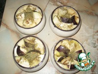 Следующий слой - нарезанные баклажаны и сыр, сверху специи, соль. Залить томатным соком |