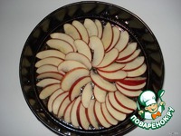 Яблоки нарезать дольками, выложить в смазанную форму, посыпать крахмалом. На яблоки вылить тесто и поставить в разогретую духовку. |