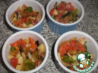 Описание: Наивкуснейшие овощи под крышкой из теста. Вкусно в горячем, теплом и холодном виде. Можно есть как самостоятельно блюдо или как закуску. Тесто пропитывается ароматом овощей. Отламываем кусочек, макаем в соус, на вилочку овощей... и наслаждаемся... ооочень вкусно для конкурса "Постимся с Mulinex"
