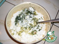 В жирный творог (у меня домашний) давим через пресс чеснок, мелко режем укроп, солим, перчим и хорошо вымешиваем |