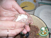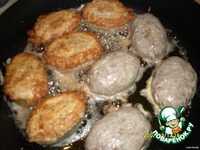Готовые зразы обваливаем сначала в муке, потом в яйцах, взбитых с молоком. Жарим с двух сторон на среднем огне |