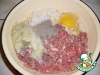 В фарш добавляем замоченный в молоке и отжатый бaтон, тертый лук, 1 яйцо, соль, перец... Хорошо вымешиваем. |