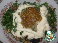 Солим, перчим - по вкусу. Заправляем майонезом, горчицей. Если Вы предпочитаете масло, то просто заменяете майонез на масло, только его нужно взять немного меньше. |