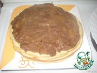 На блин посыпанный сыром, сразу со сковороды кладём печёночный блин. |
