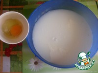 Кефир смешиваем с водой. Взбиваем немного яйцо с солью, сахаром, содой. |