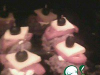 Затем сверху на каждый шарик кладем ломтик сыра, кружочек помидора и маслинку (закрепляем зубочисткой, чтобы не развалилось) и запекаем еще 10 мин. |
