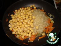 Добавляем рис.. нут... Солим.. перчим.. Чеснок режем пластиками... Заливаем водой... добавляем куркуму (для цвета)... доводим до кипения... |
