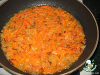 Морковь если с ботвой отрезать зелень. Промыть и очистить экономным ножом снова промыть .Нашинковать или натереть на тёрке ,добавить в лук и продолжать пассеровку на медленном огне . |