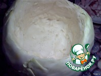 Вилок капусты моем, удаляем с поверхности поврежденные места. Со стороны кочерыжки выбираем середину, оставляя слой листьев около 2-3 см. |