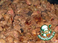 Куриную печень нарезать небольшими кусочками и добавить к луку, жарить 7-10 минут. Остудить. |