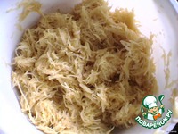 Грибы и лук мелко порезать и обжарить на растительном масле.Картофель почистить и натереть на мелкой терке,отжать руками лишнюю жидкость. Посолить и поперчить по вкусу. |