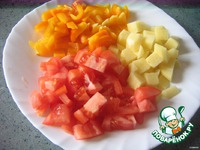 Картофель, перчик и помидоры (снять кожицу) нарезаем кубиками. |