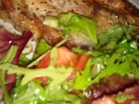 Готовую свинину подаем с чем хотите. У нас просто с салатом бэйби. |