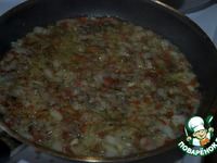 Нагреть оставшееся масло и обжарить лук. Добавить чеснок, перец, орегано, базилик и готовить еще 3 минуты. Подмешать к мясу. |