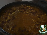 Через час добавить фасоль и кукурузу и готовить еще 15 минут. |