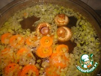 Варим минут 30 (чтоб картошка начала развариваться), добавляем грибы и лаврушку. |