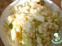 Жарить лук и яблоки на сливочном масле в течении 5 минут. |