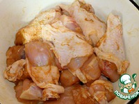 Курицу разрезать на части,натереть солью с 1 чайной ложкой карри |