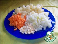 Подготавливаем овощной бульон. Нарезаем овощи. И добавляем их в умеренно кипящую воду. Варим на слабом огне 20 мин. В это время займемся огурцами. |