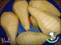 Груши очистить от кожуры и семечек.Надрезаем горизонтально на дольки,но не прорезаем до конца. |