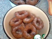 Замесить тесто. Раскатать 0,5 см. Большим стаканом вырезать кружок, маленьким стаканом посередине сделать еще один кружочек. В растительном масле (фритюр) пожарить пончики до золотистого цвета. |