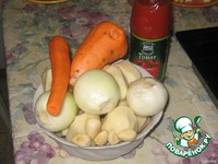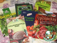 Куриную голень замариновать в специях, травах, уксусе с водой, посолить,поперчить. Вот чем мы мариновали сегодня (перечислять очень долго, поэтому наглядный пример лучше) |