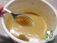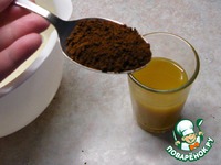 Кофе растворяем в теплом соке(у меня абрикосовый).Перемешиваем,добавляем к сахару и яйцам,тщательно перемешиваем. |