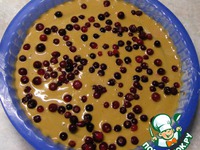 Форму смазываем сливочным маслом(у меня 23 см) и выливаем примерно половину теста(закрываем дно),затем выкладываем клюкву. |