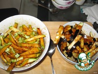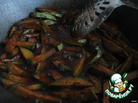 Теперь по очереди в воке обжариваем: баклажаны - 3-4 минуты с нарезанным мелко зубчиком чеснока, добавить немного перцовой приправы и измельченных пряностей |
