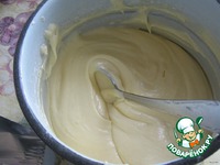 Добавить муку, крахмал и разрыхлитель. Тесто получается густое. Дать ему постоять минут 30 |