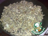 4. Сливаем воду с грибов и добавляем в грибы лук. Жарим 5 минут. |