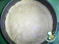 Тесто разделить на две части. Одну часть выложить в форму (смазанную маслом) у меня диаметр формы 26 см, разровнять сделать бортики. |