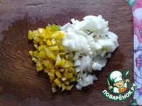 Лук и перец режу меленько, чуть-чуть обжариваю |