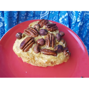 Фруктовое или ягодное повидло смешать с желтками, растертыми с сахаром, манной крупой и взбитыми белками. После этого массу выложить в смазанной маслом сотейник, посыпать сахаром, смешанным с нарубленными орехами, и запекать в духовке 20 -30 минут.