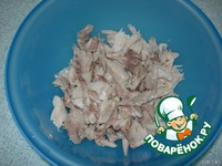 Щиплем курочку на небольшие кусочки. |
