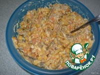 Все посолить (побольше, т. к. морковь и кукуруза придают сладость) и заправить майонезом. |