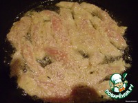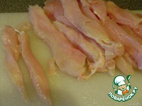 куриное филе нарезать тонкими полосками шириной 1см,смешать с майонезом,солью и карри и оставить на ночь или мин.на 1час.Я утром замариновала,а вечером после работы пожарила. |